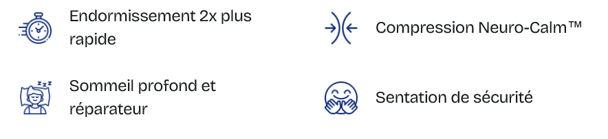 La technologie Compression Neuro-Calm™ exerce une légère pression uniforme sur tout le corps, un peu comme un câlin réconfortant.